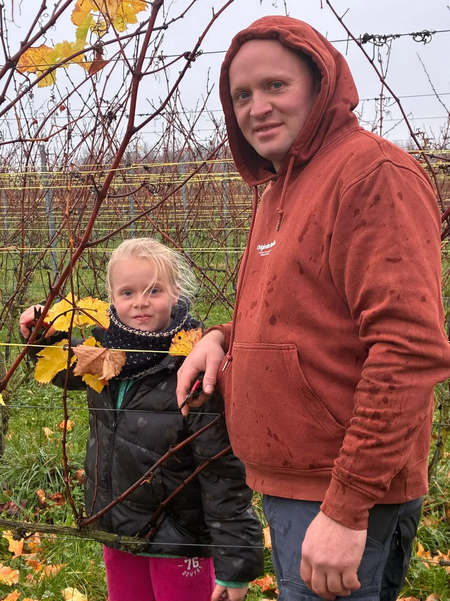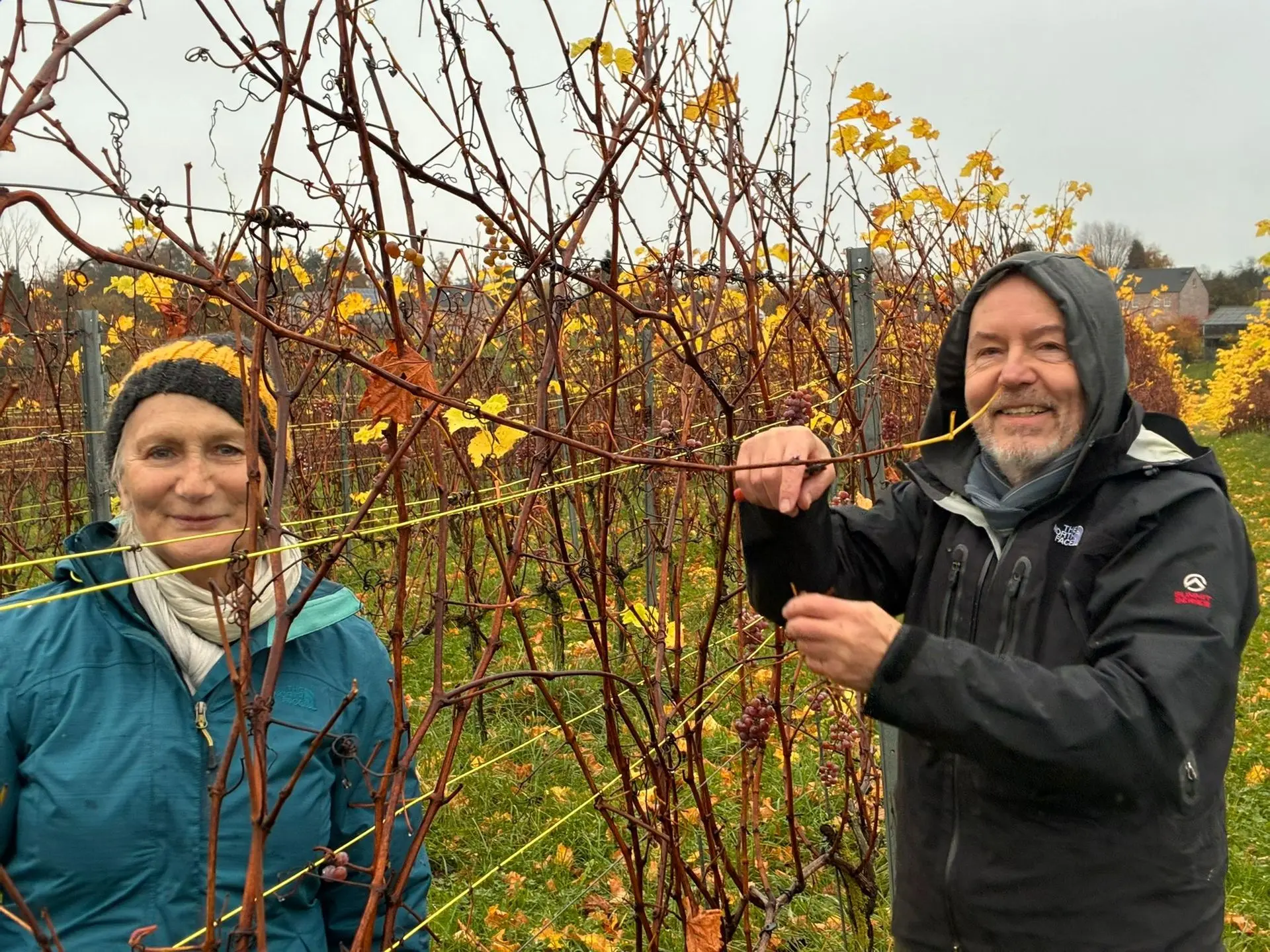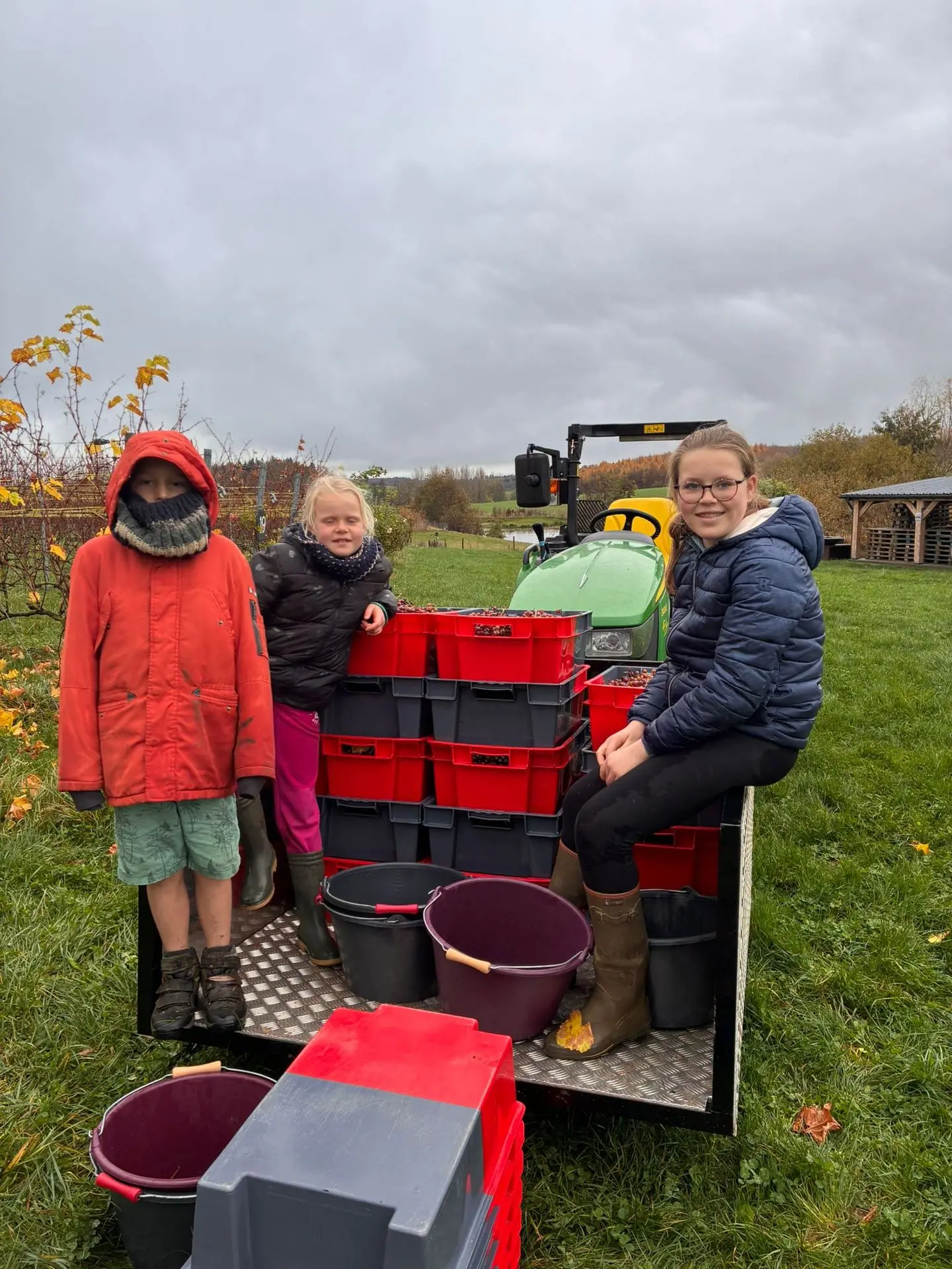 Rien ne se perd, on a récolté les quelques grapillons laissés dans les rangs pour en faire du jus qui fera la plus grande joie des petits (et de certains grands) lors de prochains apéros!